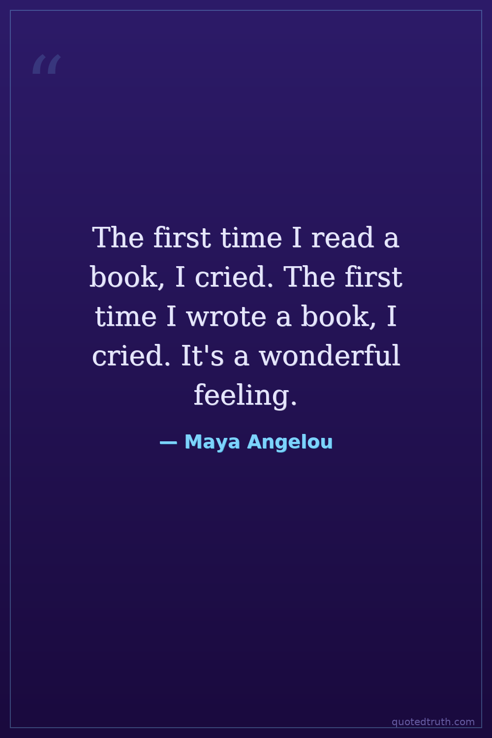 The first time I read a book, I cried. The first time I wrote a book, I cried. It's a wonderful feeling.