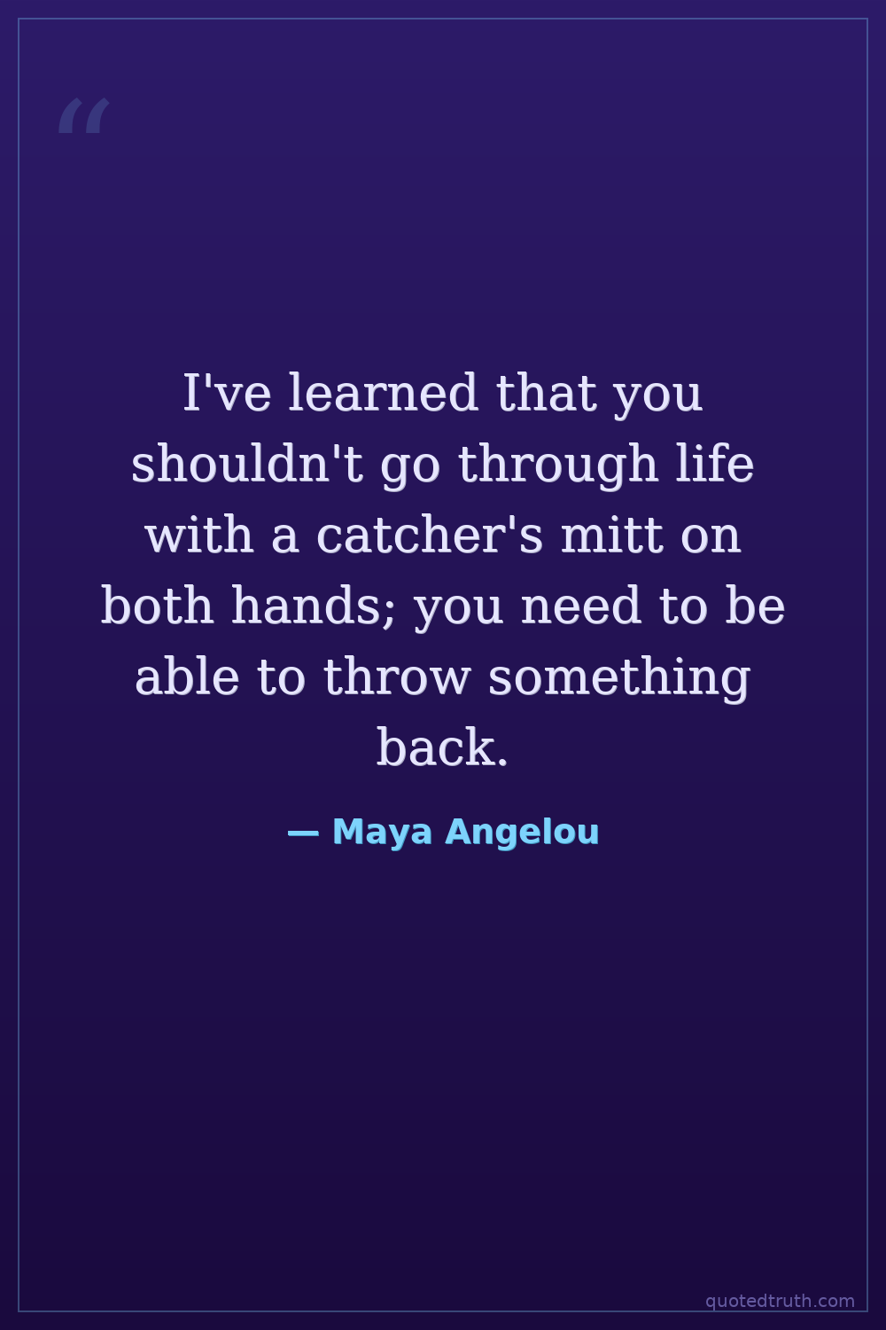 I've learned that you shouldn't go through life with a catcher's mitt on both hands; you need to be able to throw something back.