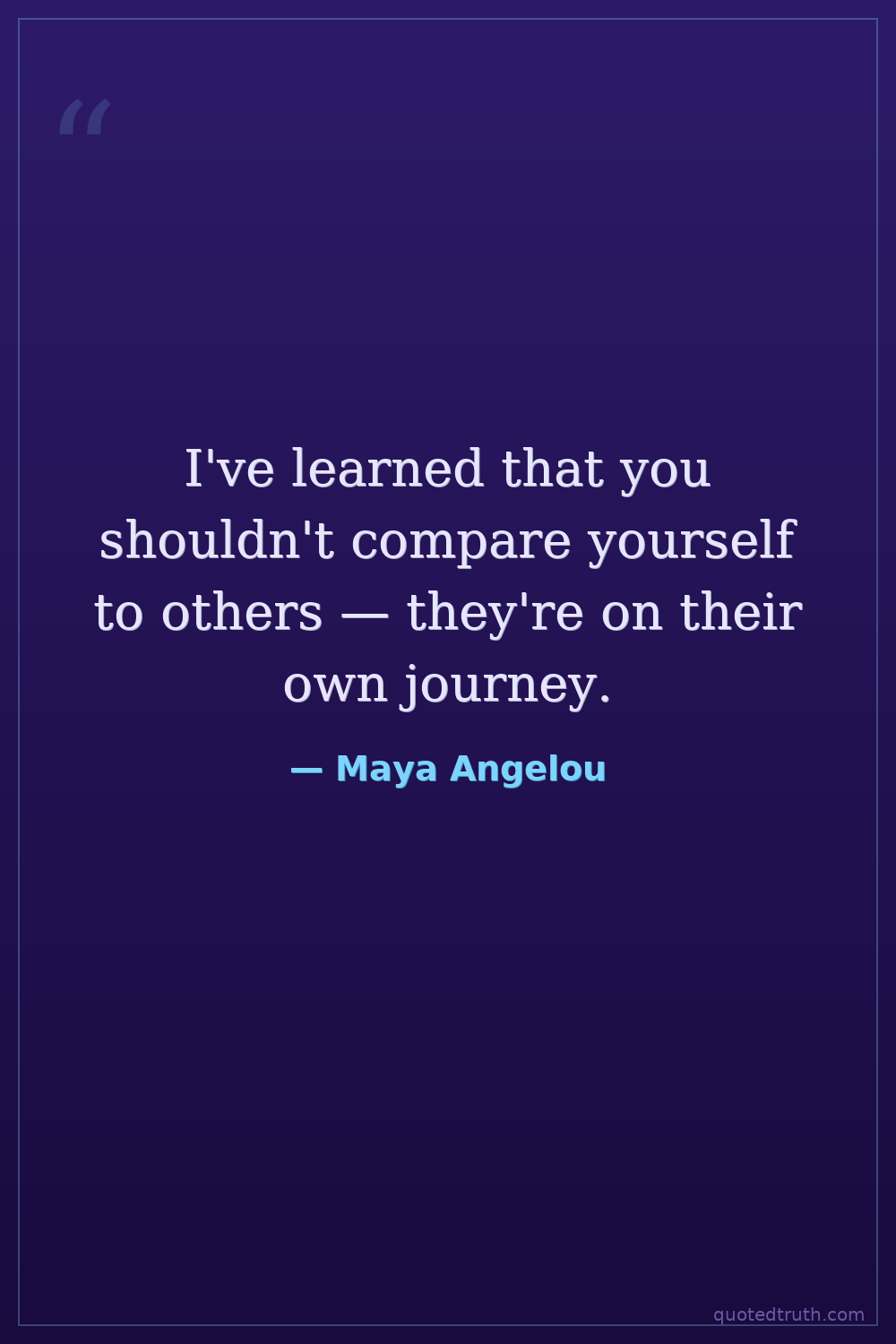I've learned that you shouldn't compare yourself to others — they're on their own journey.
