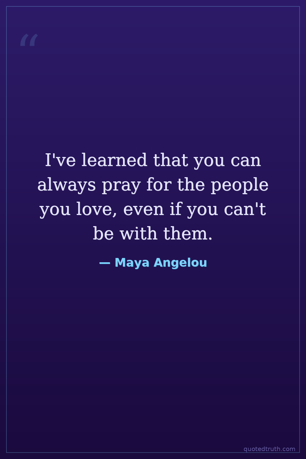 I've learned that you can always pray for the people you love, even if you can't be with them.