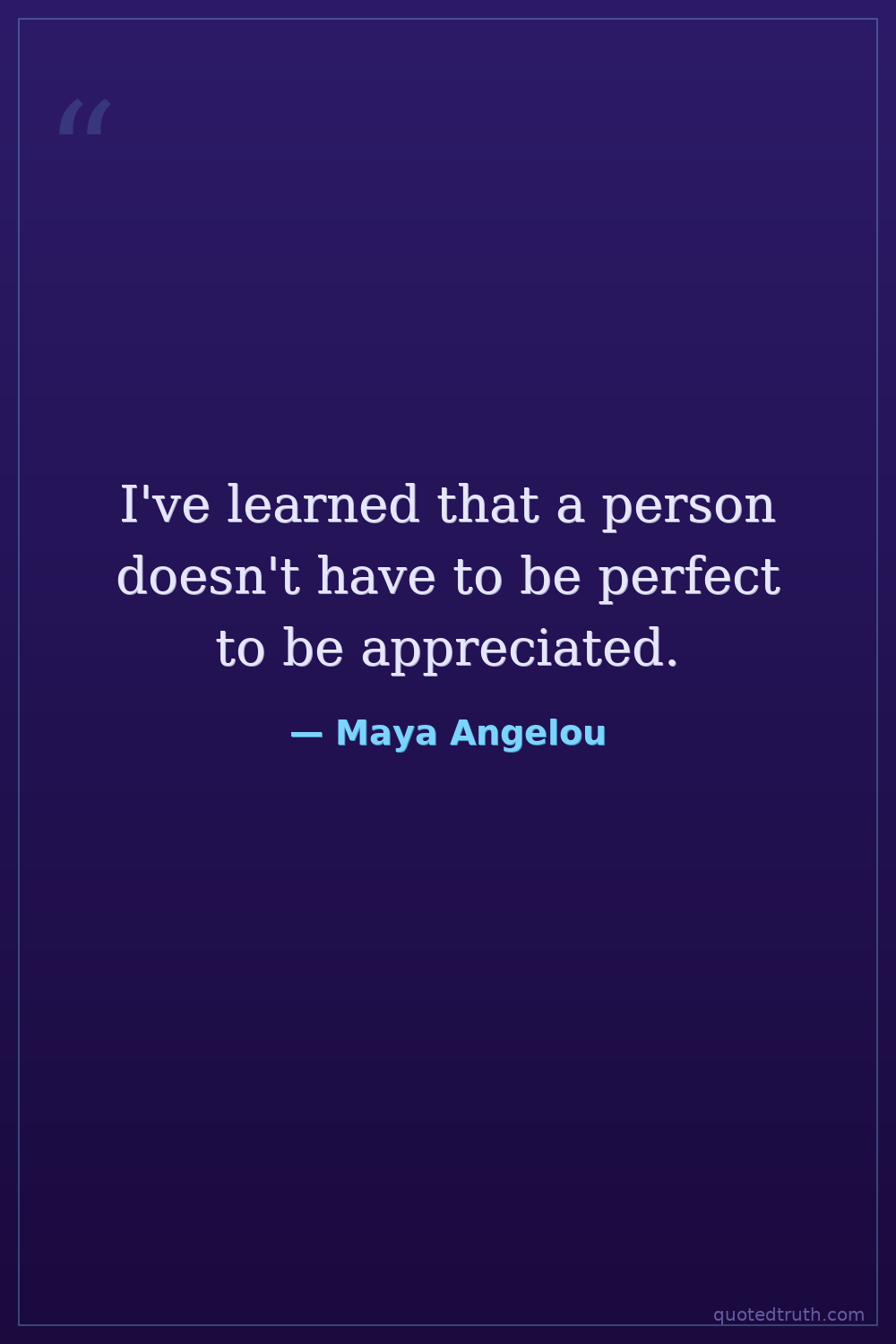 I've learned that a person doesn't have to be perfect to be appreciated.