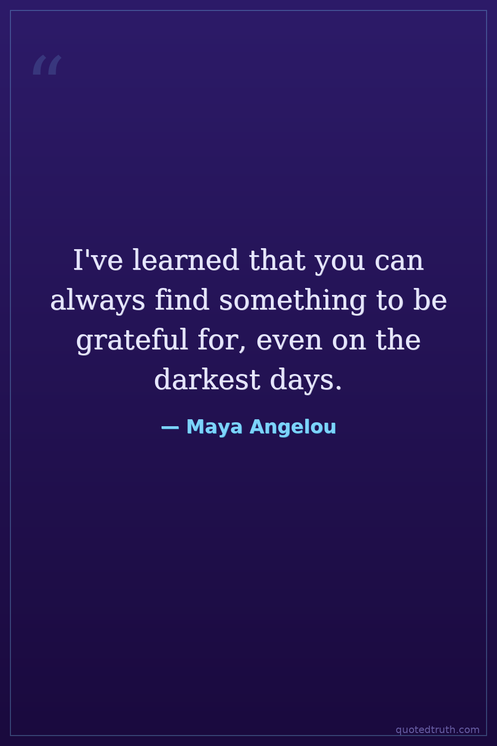 I've learned that you can always find something to be grateful for, even on the darkest days.
