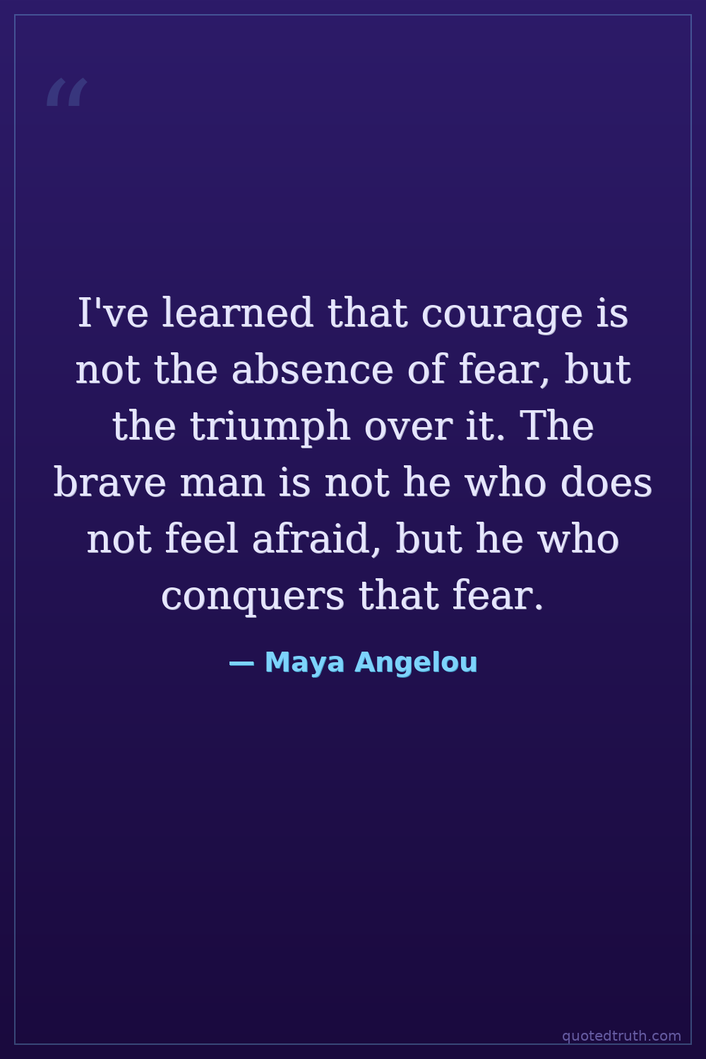 I've learned that courage is not the absence of fear, but the triumph over it. The brave man is not he who does not feel afraid, but he who conquers that fear.