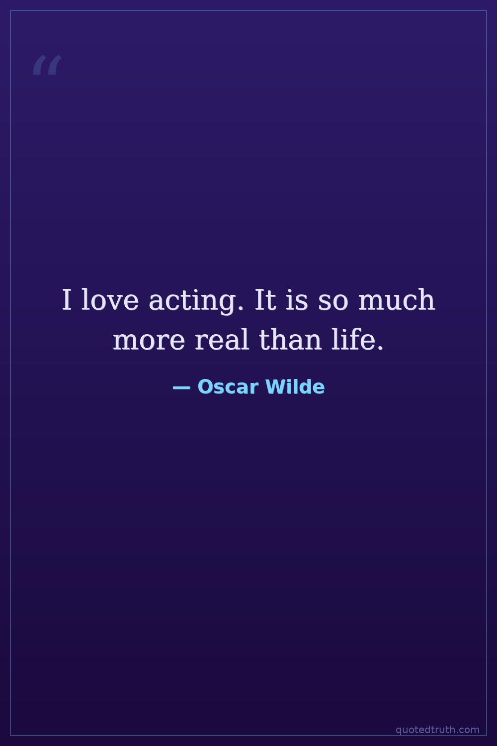I love acting. It is so much more real than life.