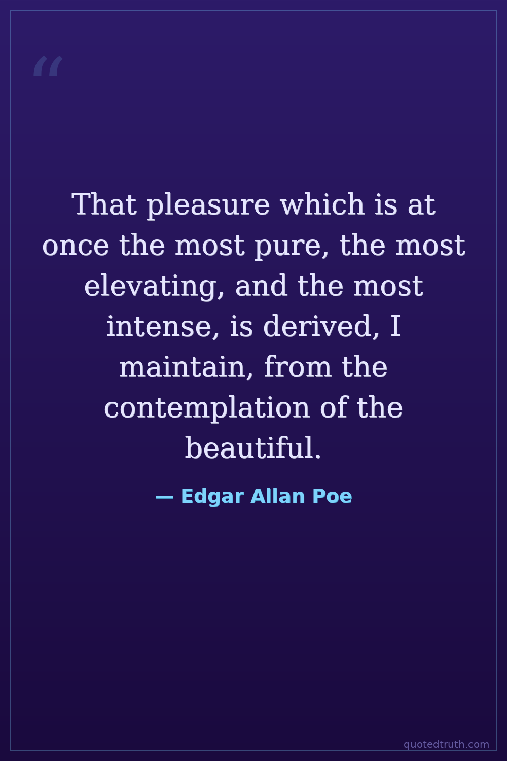 That pleasure which is at once the most pure, the most elevating, and the most intense, is derived, I maintain, from the contemplation of the beautiful.