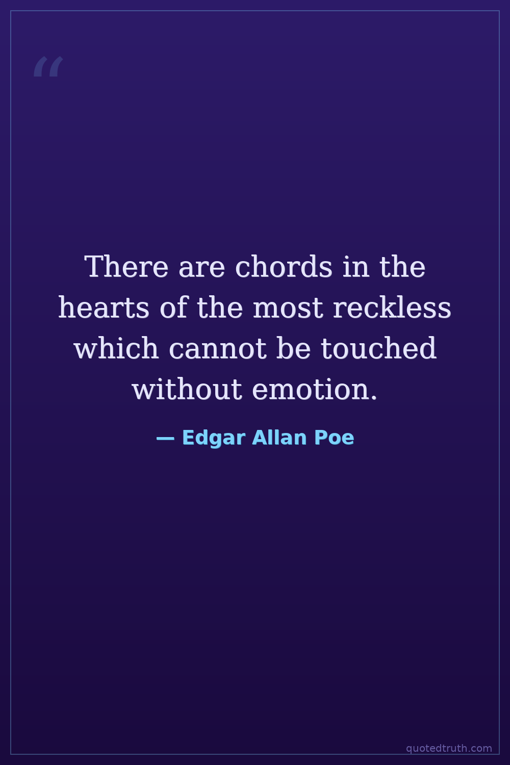 There are chords in the hearts of the most reckless which cannot be touched without emotion.