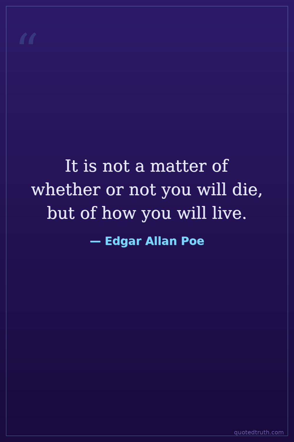 It is not a matter of whether or not you will die, but of how you will live.