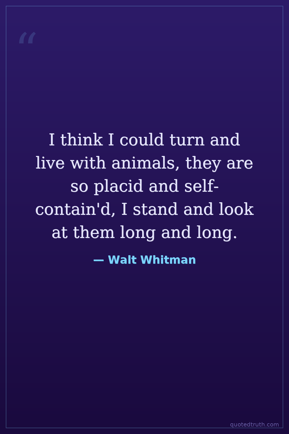 I think I could turn and live with animals, they are so placid and self-contain'd, I stand and look at them long and long.