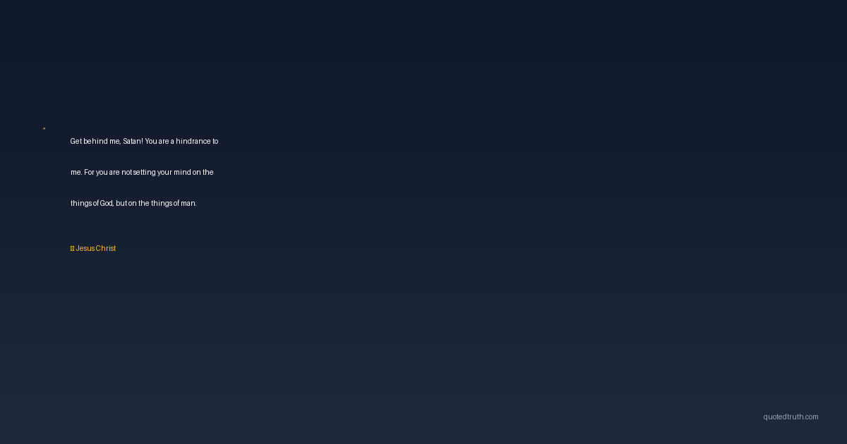 Get behind me, Satan! You are a hindrance to me. For you are not setting your mind on the things of God, but on the things of man.