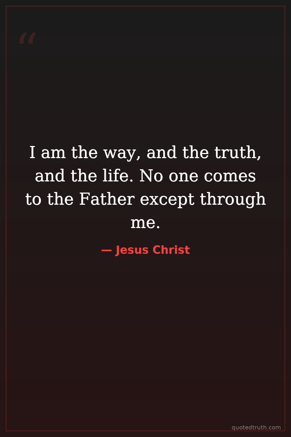 I am the way, and the truth, and the life. No one comes to the Father except through me.
