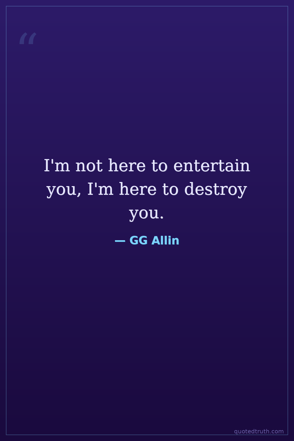 I'm not here to entertain you, I'm here to destroy you.