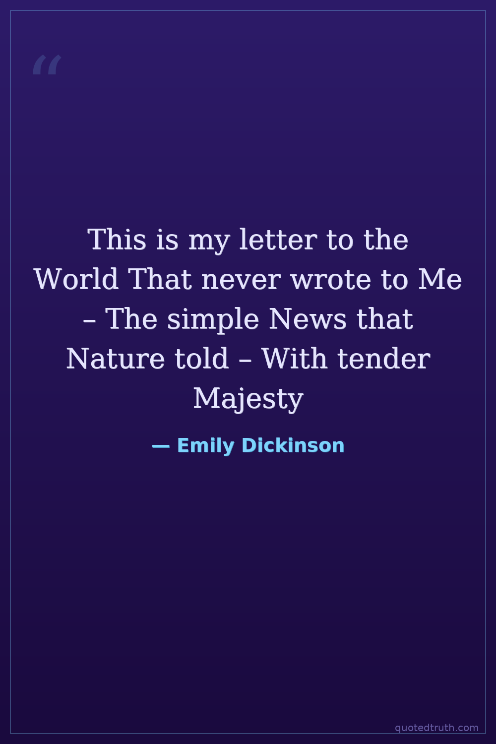 This is my letter to the World That never wrote to Me – The simple News that Nature told – With tender Majesty