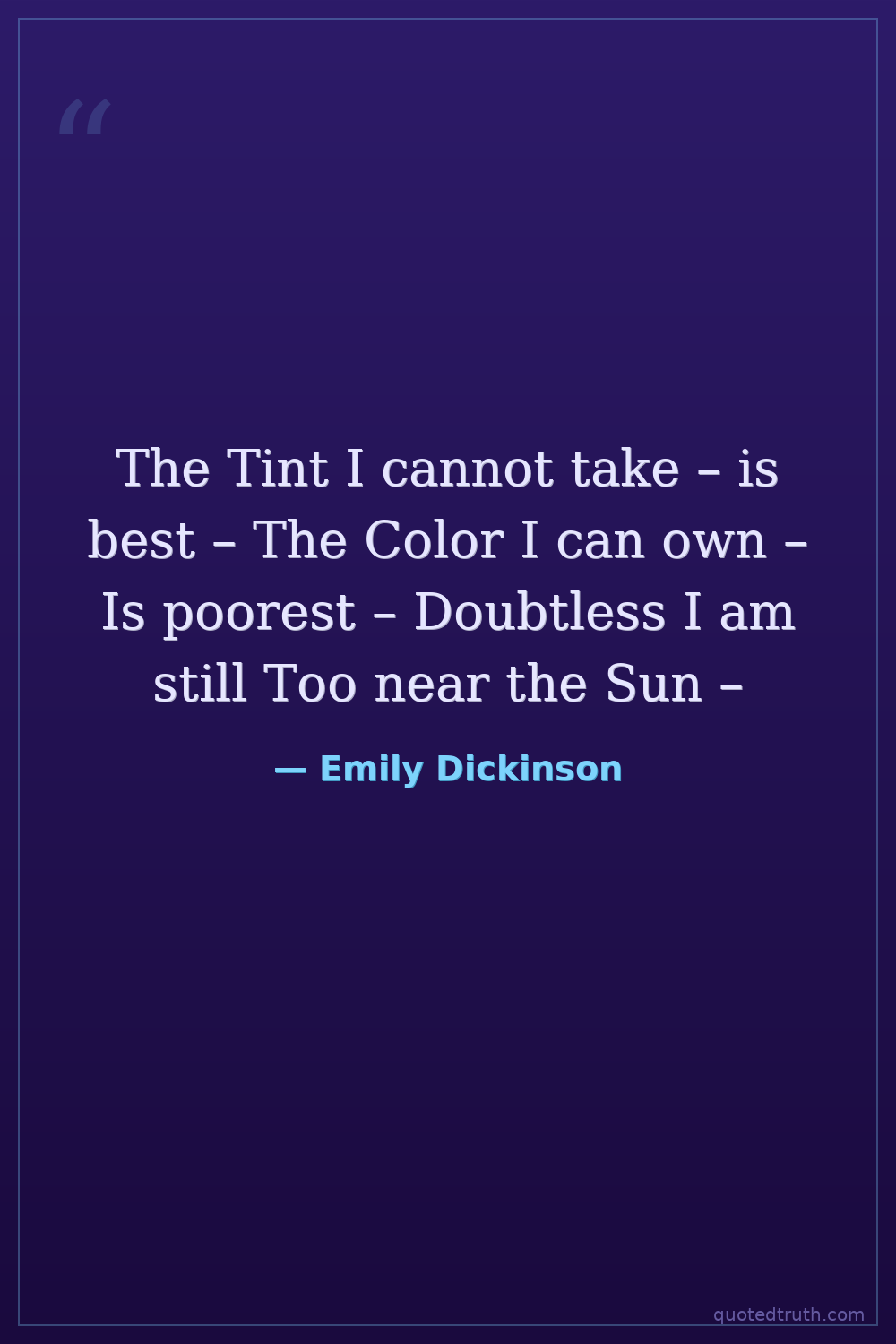 The Tint I cannot take – is best – The Color I can own – Is poorest – Doubtless I am still Too near the Sun –
