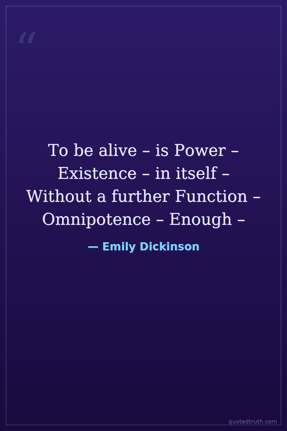 To be alive – is Power – Existence – in itself – Without a further Function – Omnipotence – Enough –