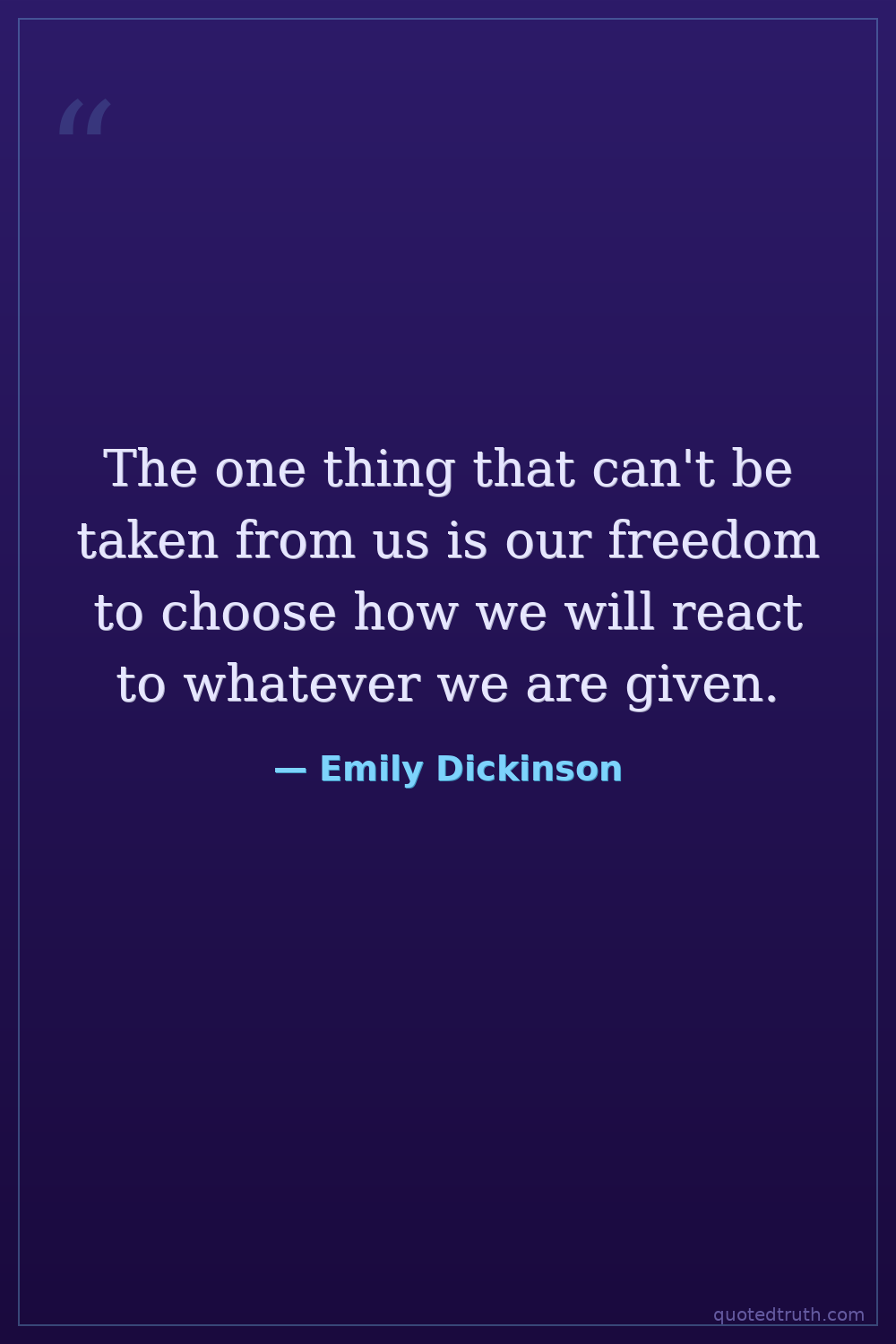 The one thing that can't be taken from us is our freedom to choose how we will react to whatever we are given.