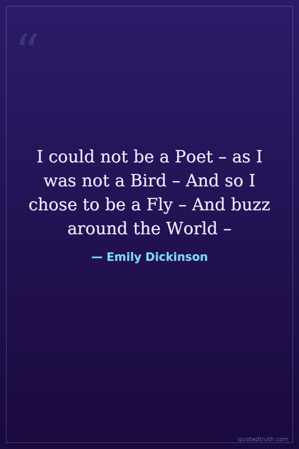 I could not be a Poet – as I was not a Bird – And so I chose to be a Fly – And buzz around the World –