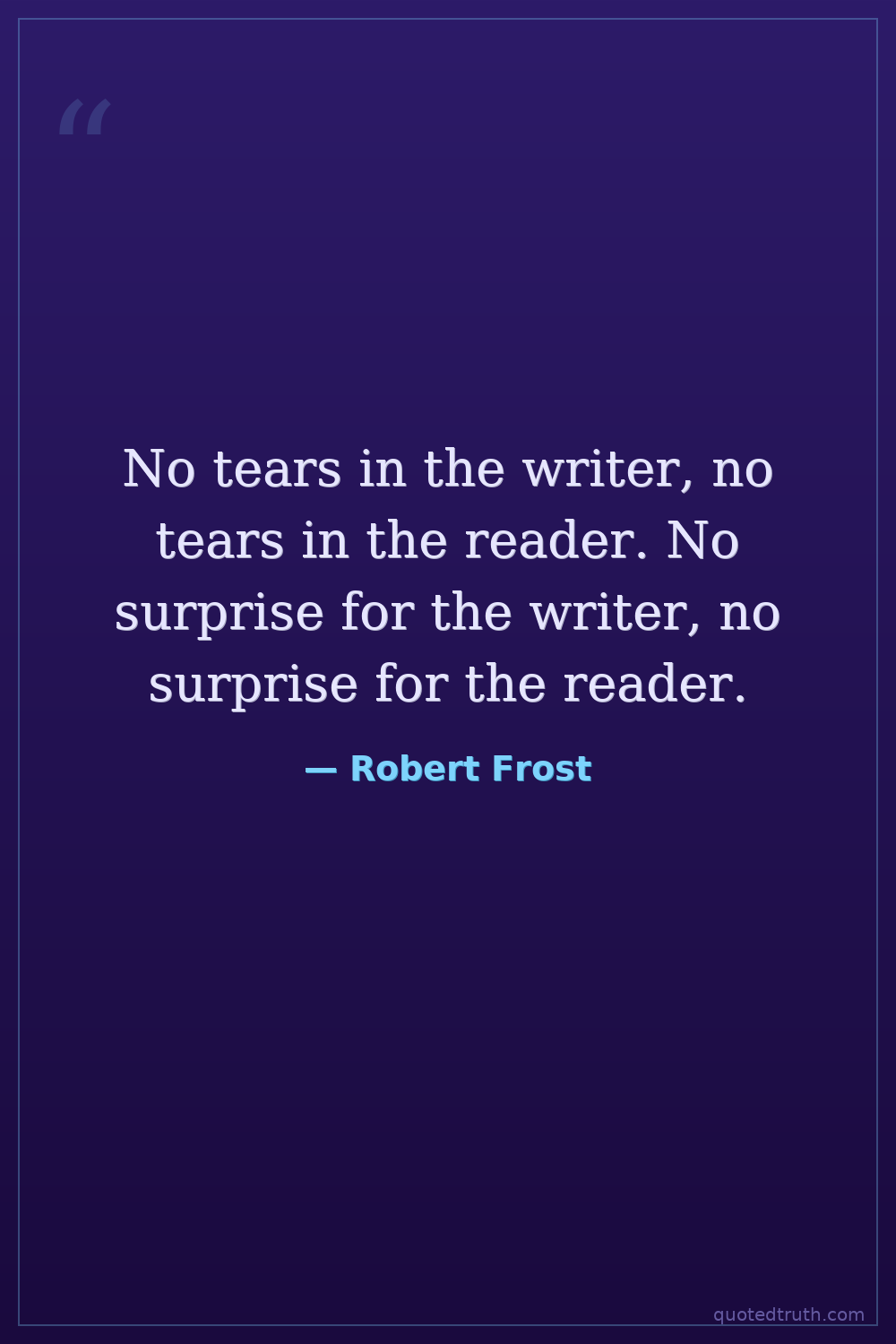 No tears in the writer, no tears in the reader. No surprise for the writer, no surprise for the reader.