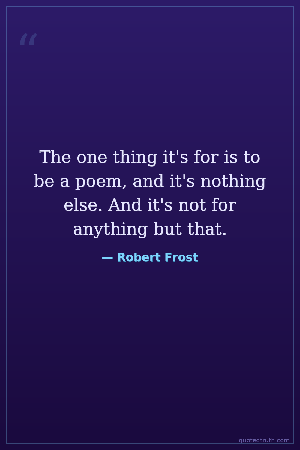 The one thing it's for is to be a poem, and it's nothing else. And it's not for anything but that.