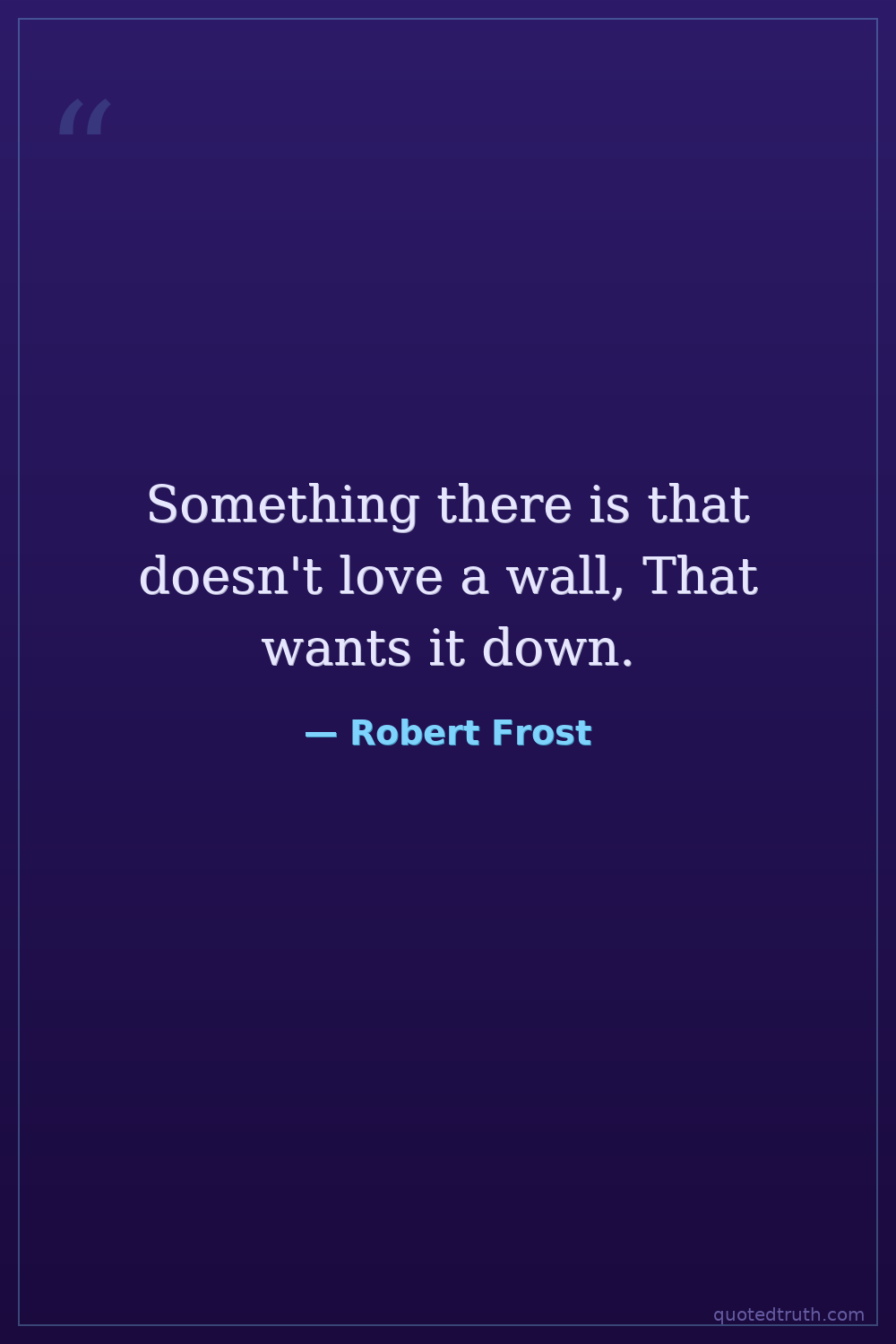Something there is that doesn't love a wall, That wants it down.