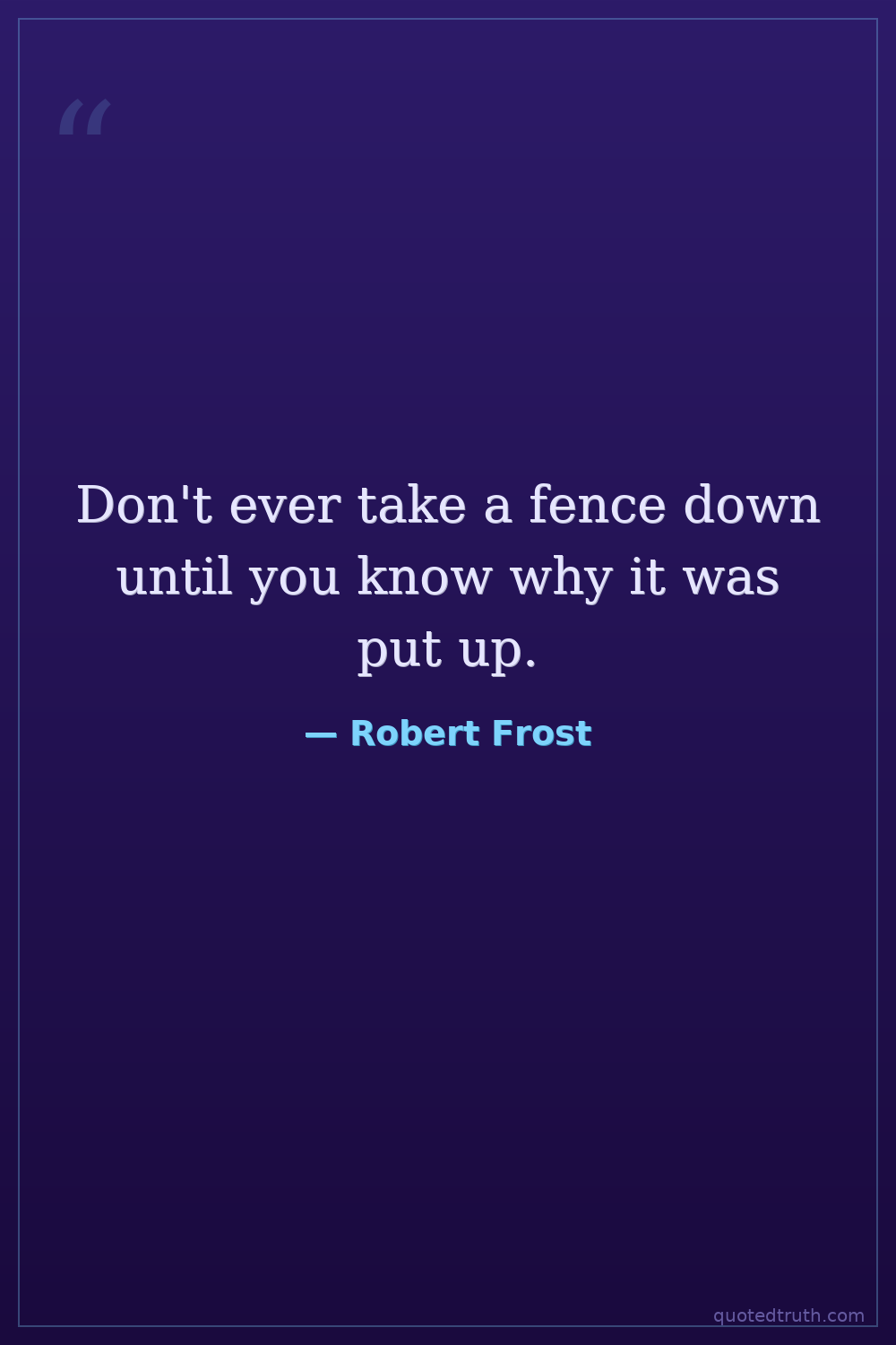 Don't ever take a fence down until you know why it was put up.