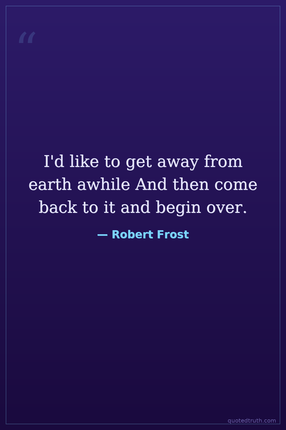 I'd like to get away from earth awhile And then come back to it and begin over.