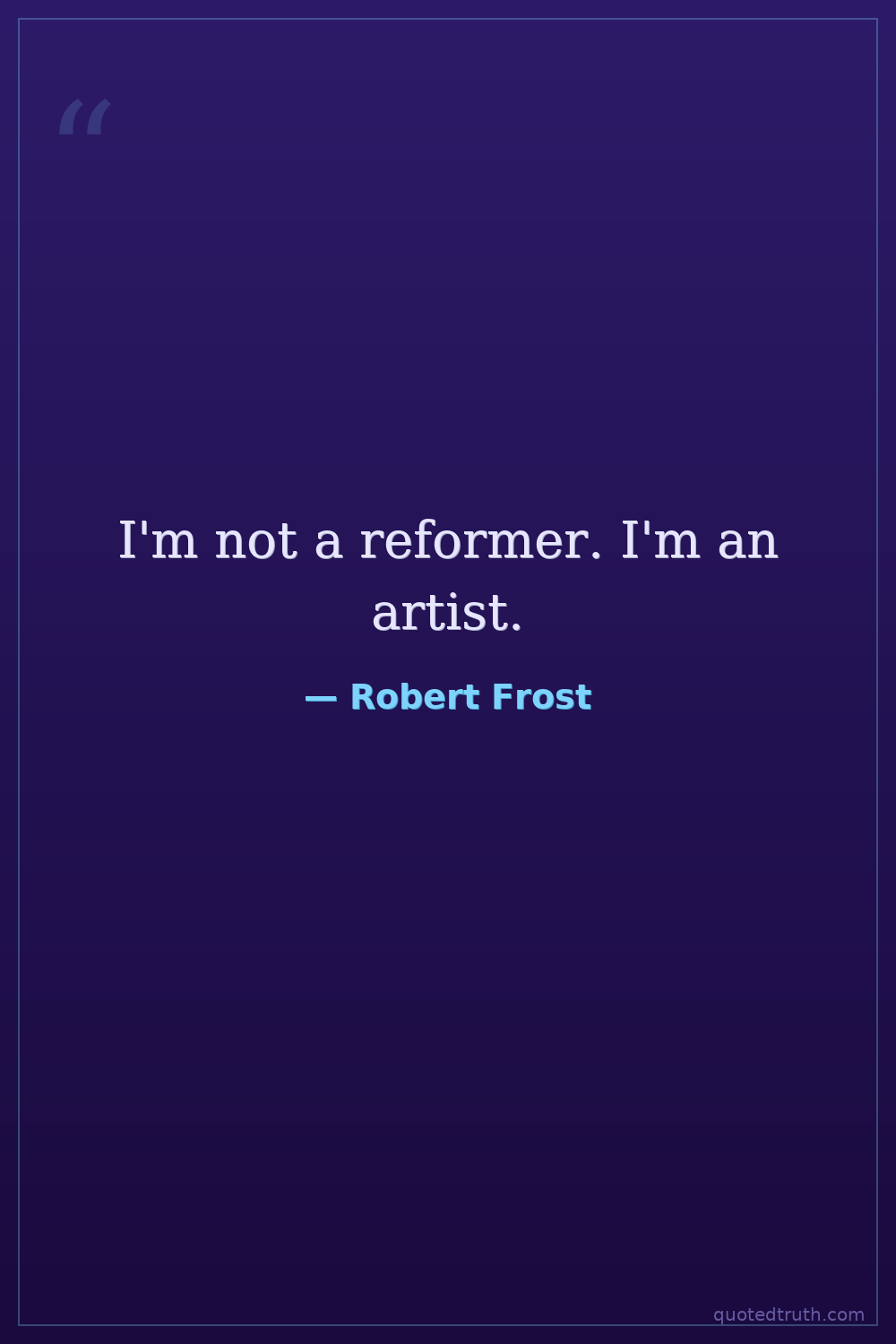 I'm not a reformer. I'm an artist.