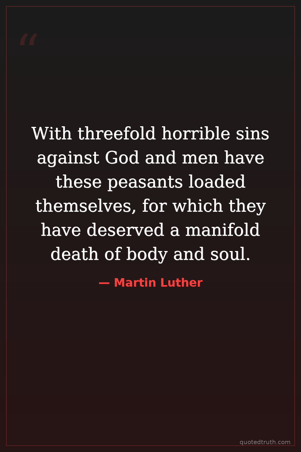 With threefold horrible sins against God and men have these peasants loaded themselves, for which they have deserved a manifold death of body and soul.