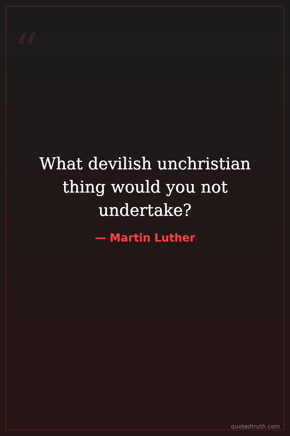 What devilish unchristian thing would you not undertake?