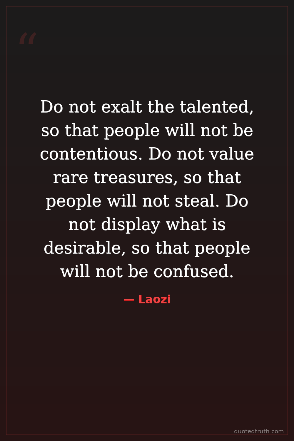 Do not exalt the talented, so that people will not be contentious. Do not value rare treasures, so that people will not steal. Do not display what is desirable, so that people will not be confused.