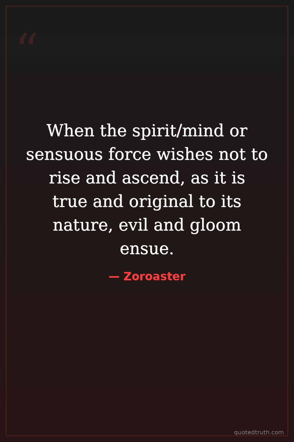 When the spirit/mind or sensuous force wishes not to rise and ascend, as it is true and original to its nature, evil and gloom ensue.