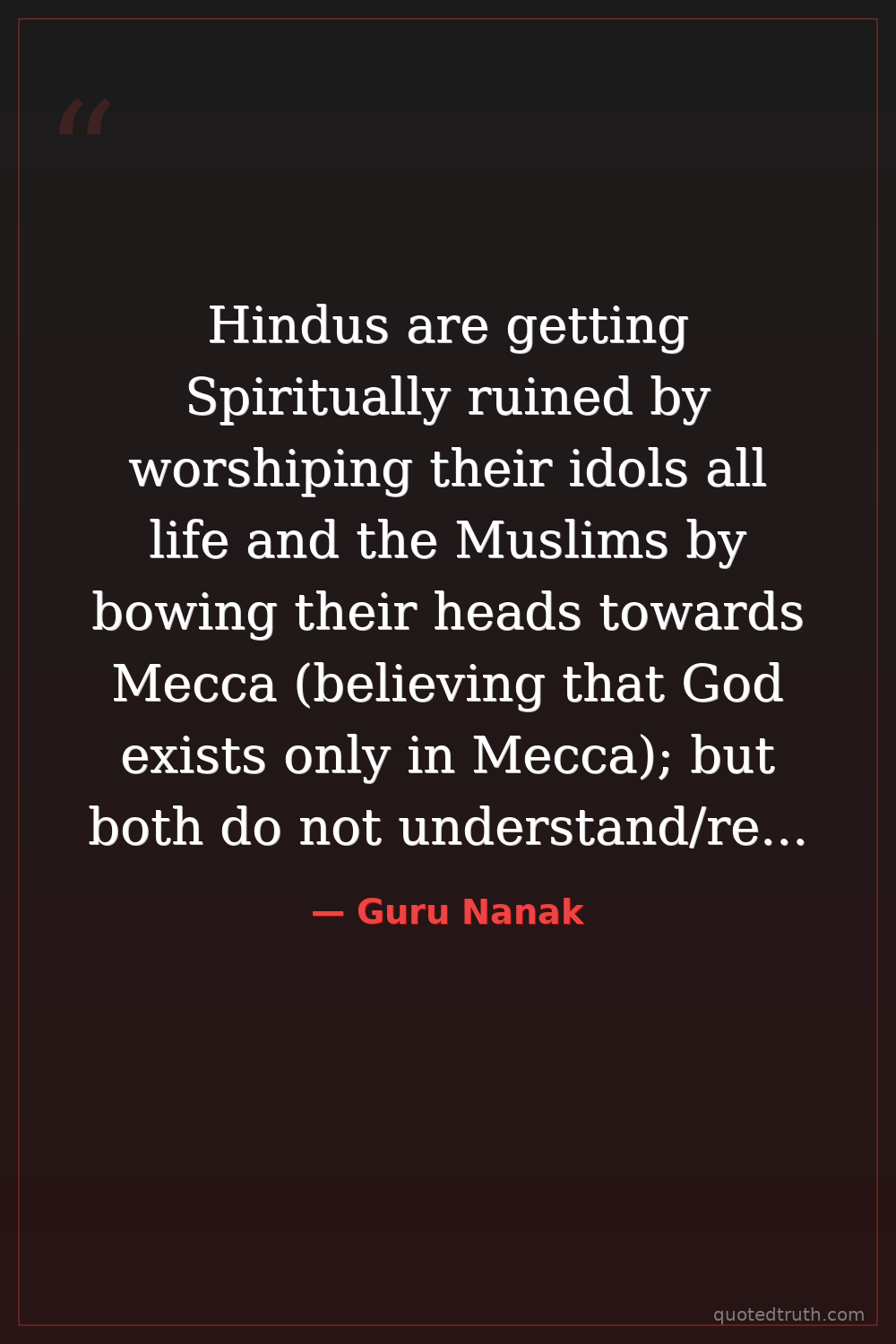 Hindus are getting Spiritually ruined by worshiping their idols all life and the Muslims by bowing their heads towards Mecca (believing that God exists only in Mecca); but both do not understand/realize YOUR true state.
