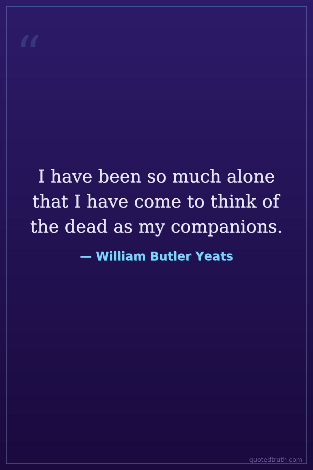 I have been so much alone that I have come to think of the dead as my companions.