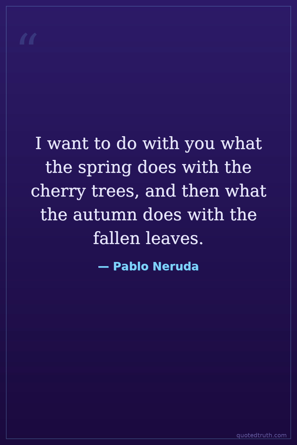 I want to do with you what the spring does with the cherry trees, and then what the autumn does with the fallen leaves.