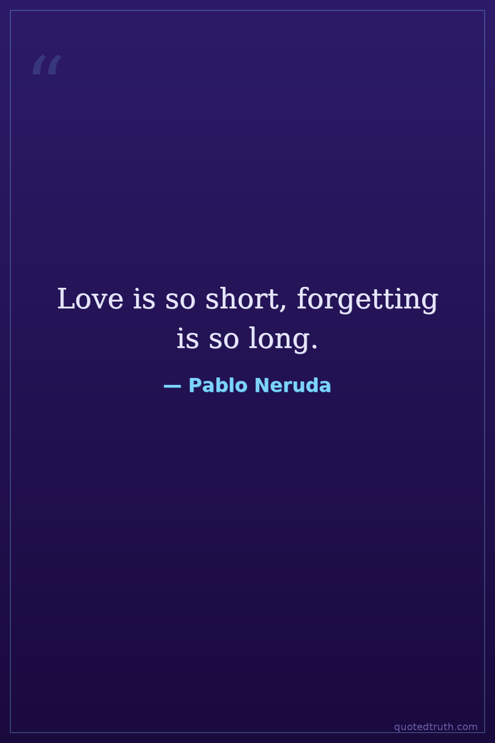 Love is so short, forgetting is so long.