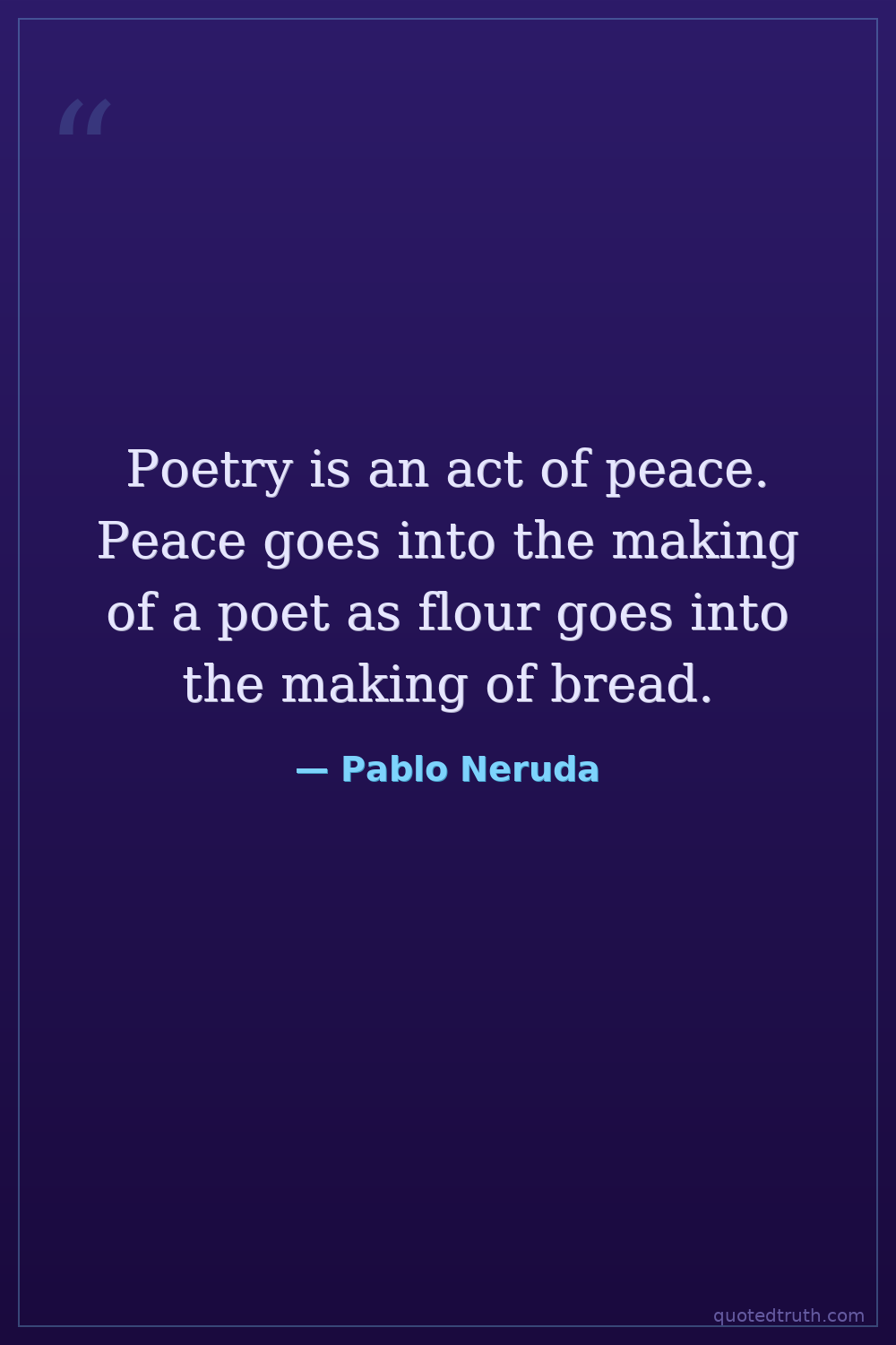 Poetry is an act of peace. Peace goes into the making of a poet as flour goes into the making of bread.