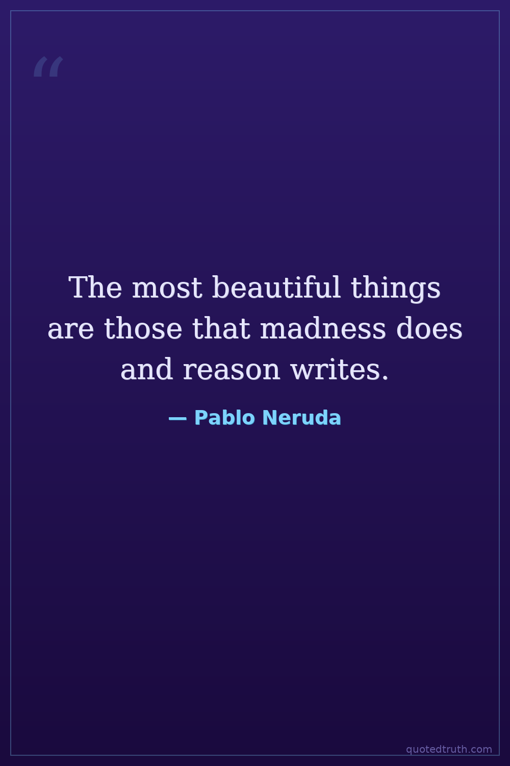 The most beautiful things are those that madness does and reason writes.
