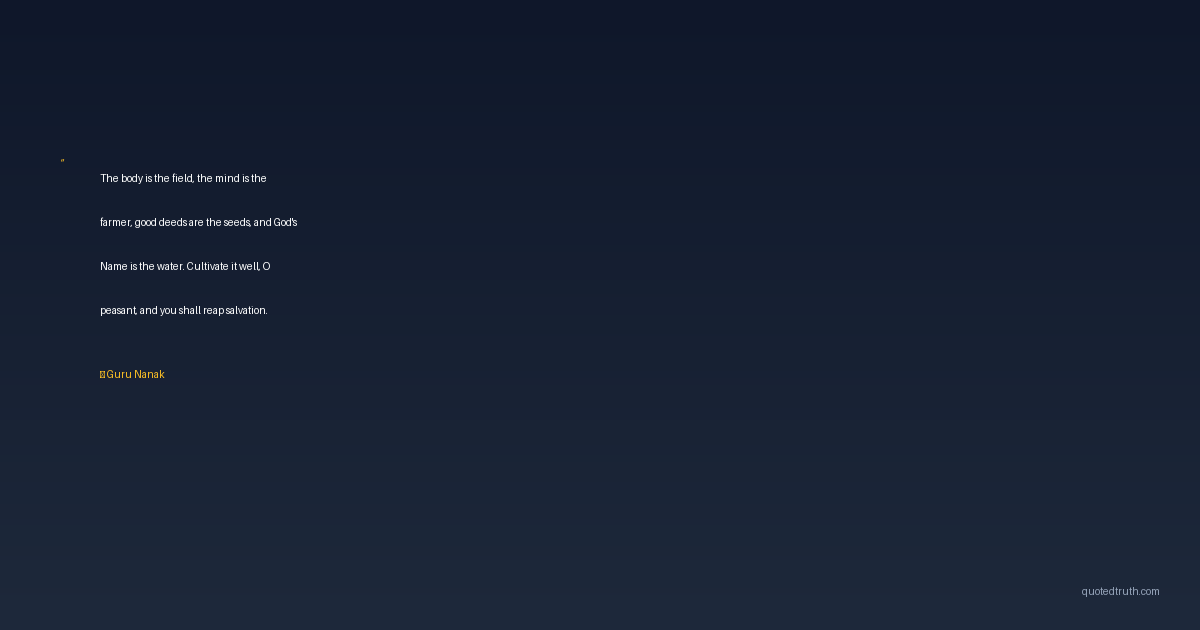 The body is the field, the mind is the farmer, good deeds are the seeds, and God's Name is the water. Cultivate it well, O peasant, and you shall reap salvation.