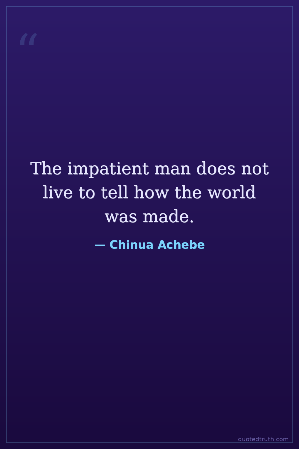 The impatient man does not live to tell how the world was made.
