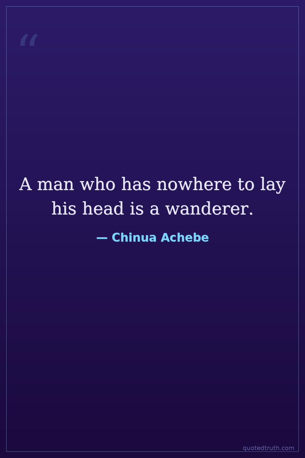 A man who has nowhere to lay his head is a wanderer.
