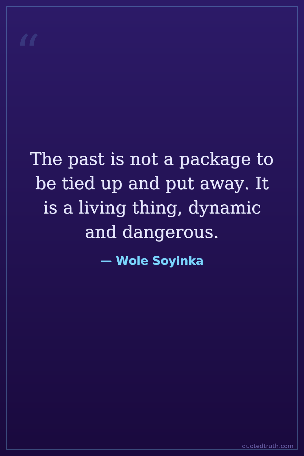 The past is not a package to be tied up and put away. It is a living thing, dynamic and dangerous.