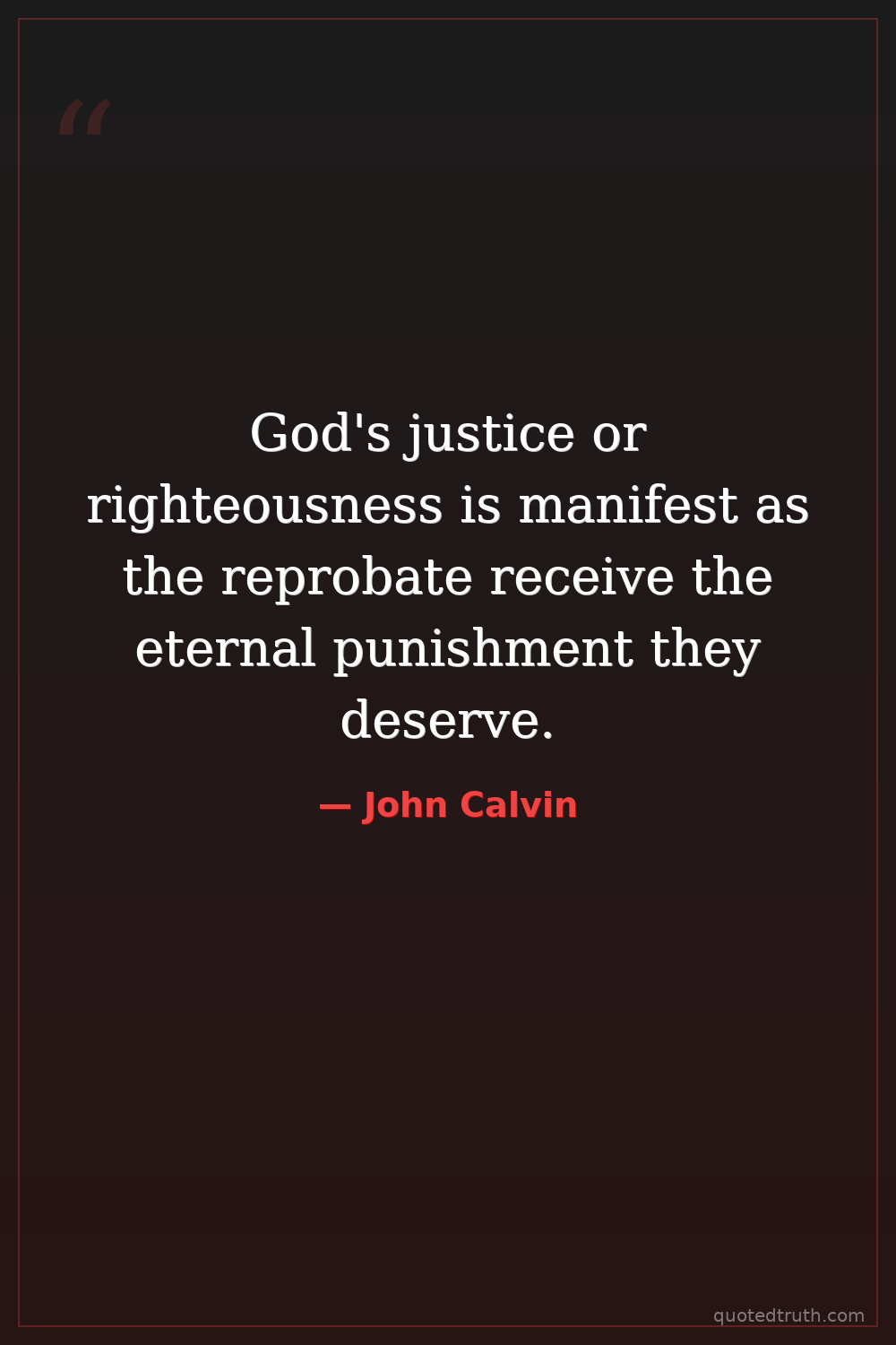 God's justice or righteousness is manifest as the reprobate receive the eternal punishment they deserve.