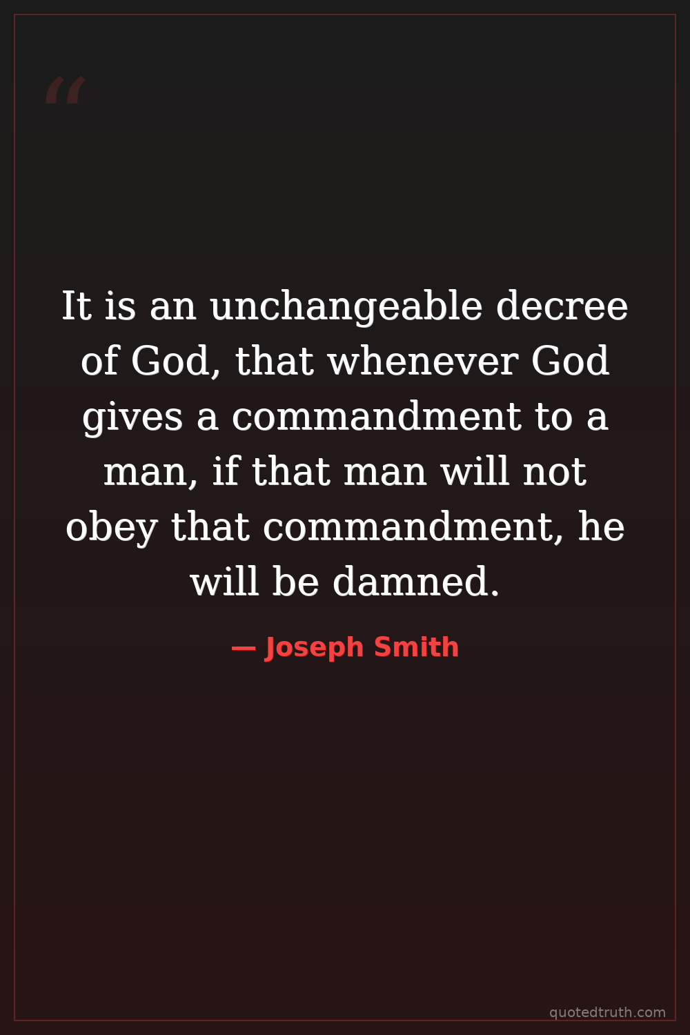 It is an unchangeable decree of God, that whenever God gives a commandment to a man, if that man will not obey that commandment, he will be damned.