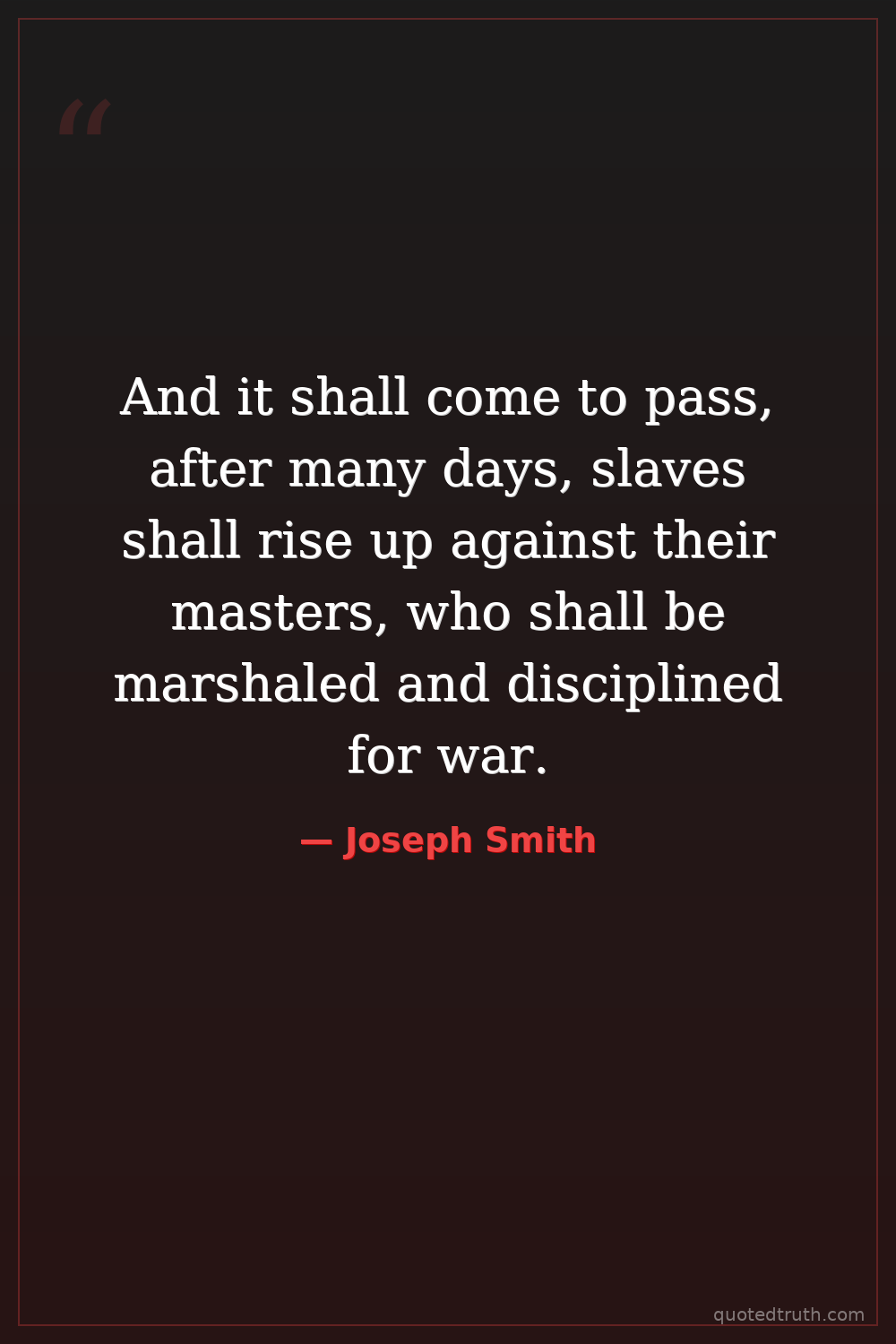 And it shall come to pass, after many days, slaves shall rise up against their masters, who shall be marshaled and disciplined for war.