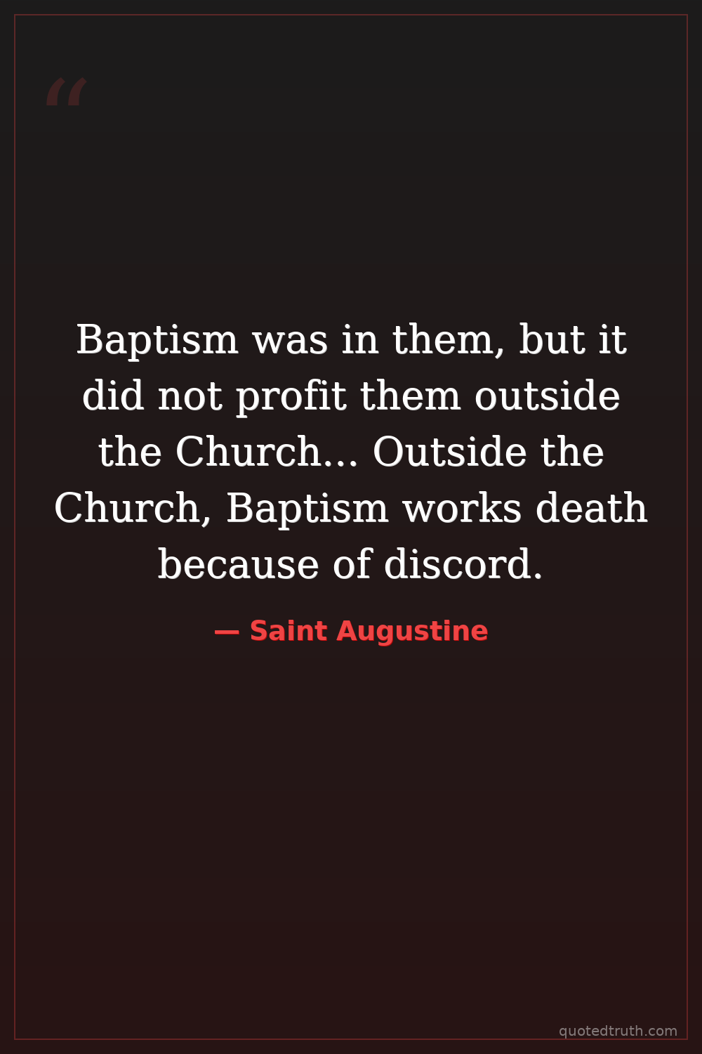 Baptism was in them, but it did not profit them outside the Church... Outside the Church, Baptism works death because of discord.