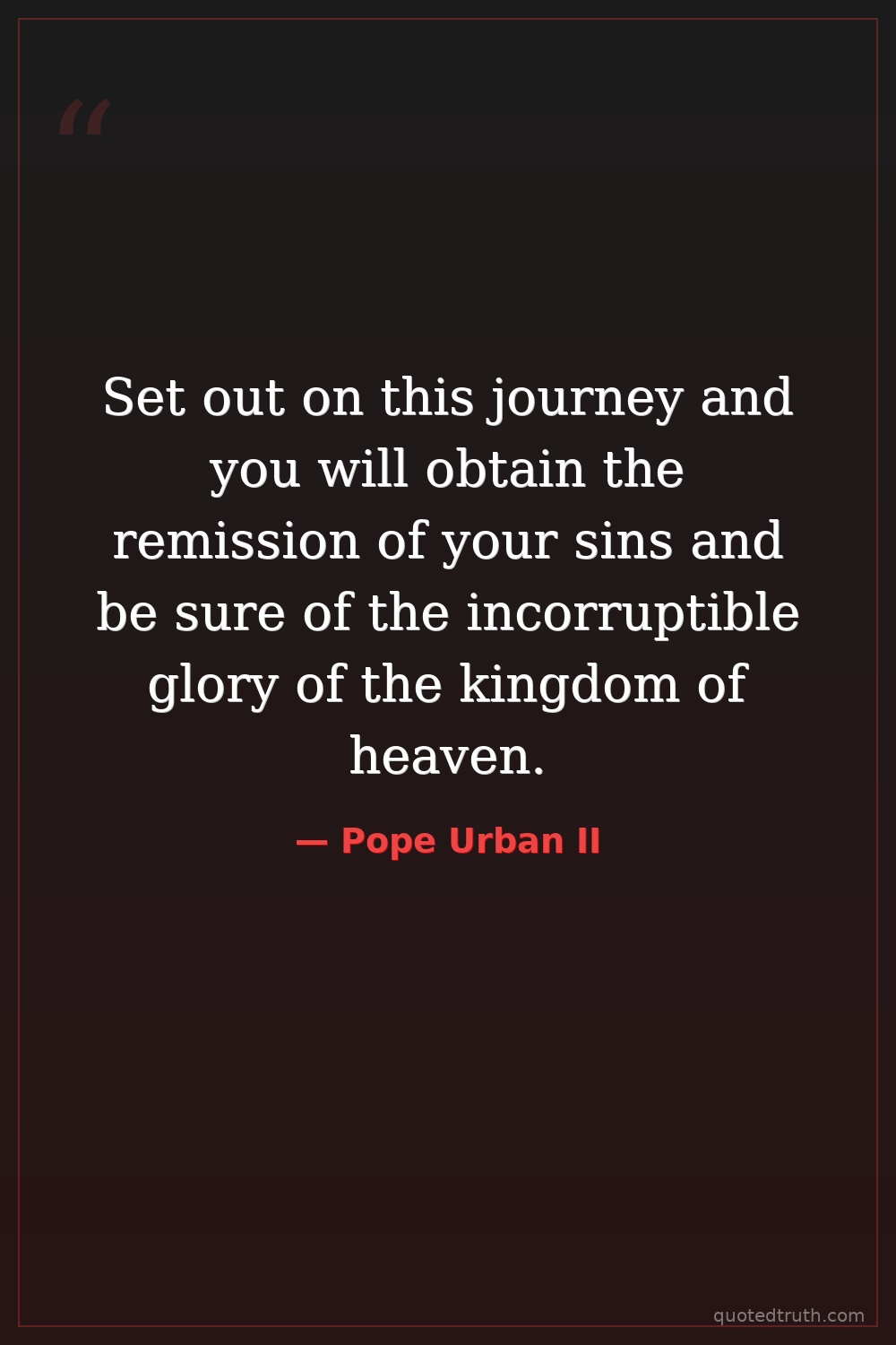 Controversial"I, Urban, wearing the pontifical vestments, and by the authority of God, confirm to those who undertake this holy journey a full remission of all their sins."