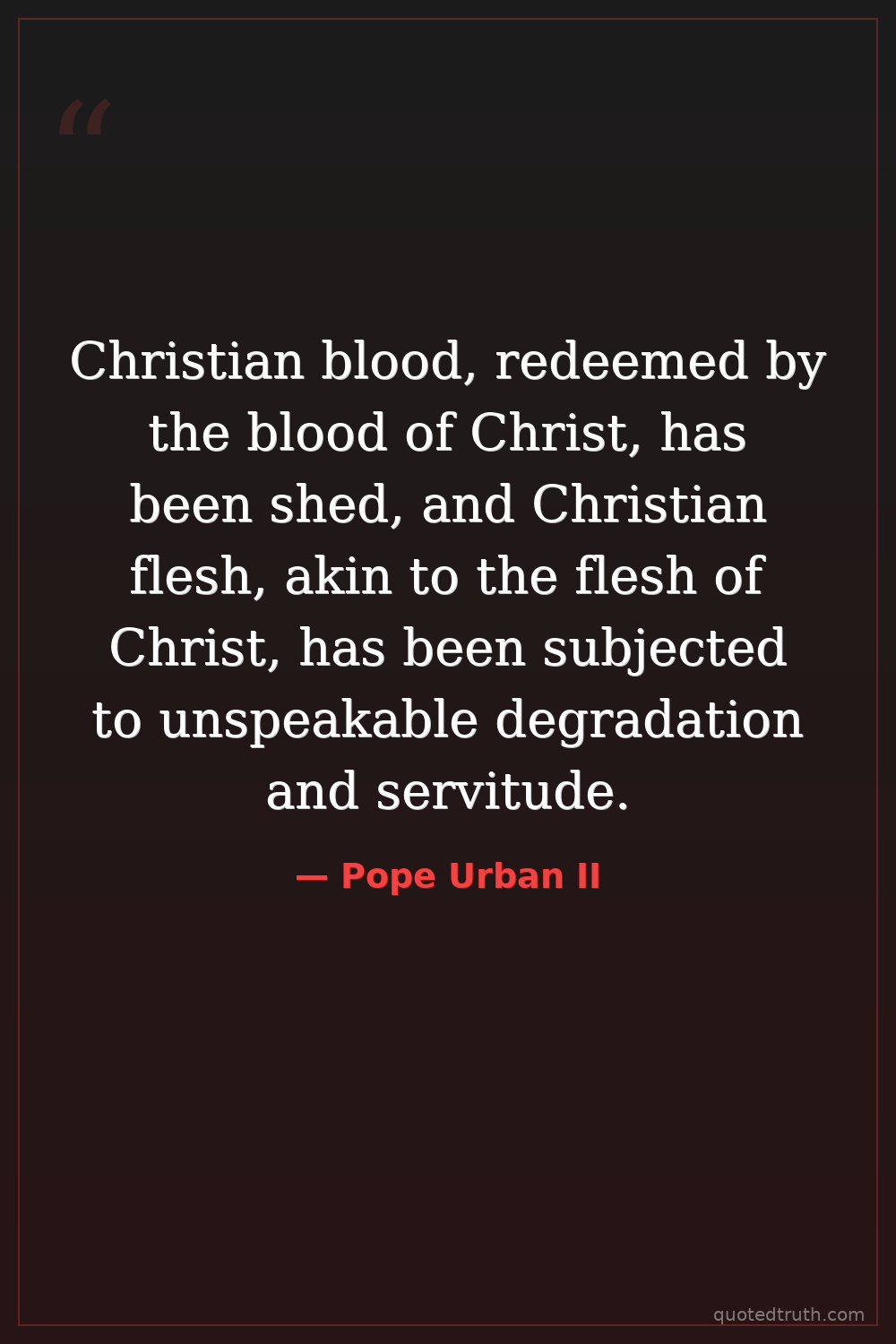 Christian blood, redeemed by the blood of Christ, has been shed, and Christian flesh, akin to the flesh of Christ, has been subjected to unspeakable degradation and servitude.