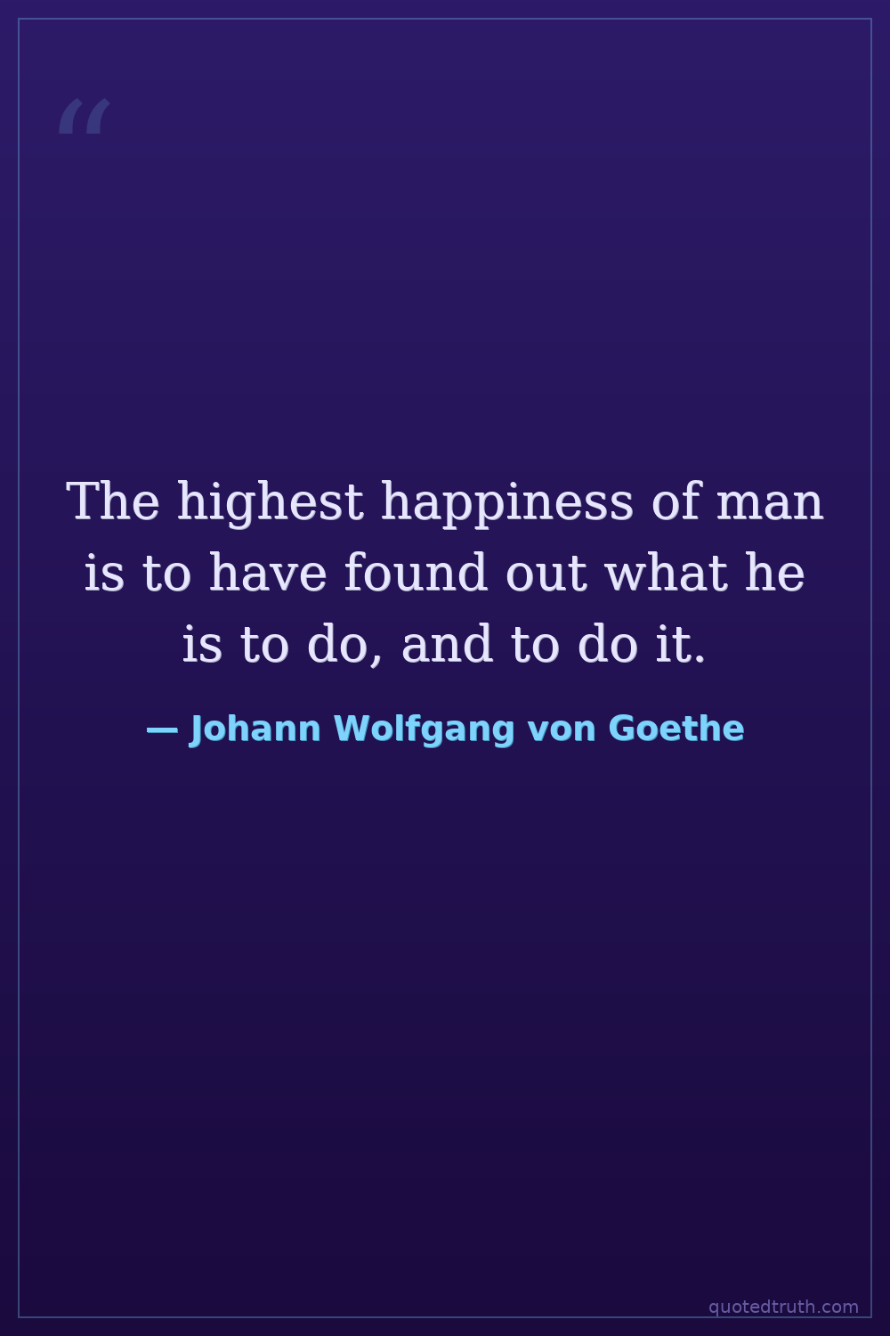 The highest happiness of man is to have found out what he is to do, and to do it.