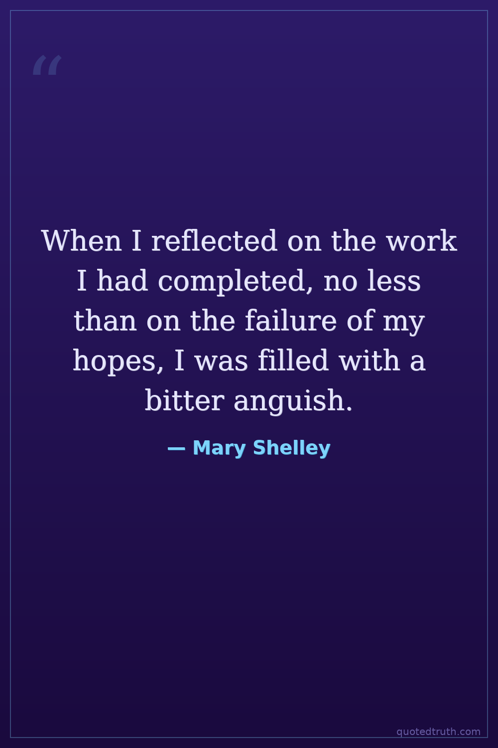 When I reflected on the work I had completed, no less than on the failure of my hopes, I was filled with a bitter anguish.