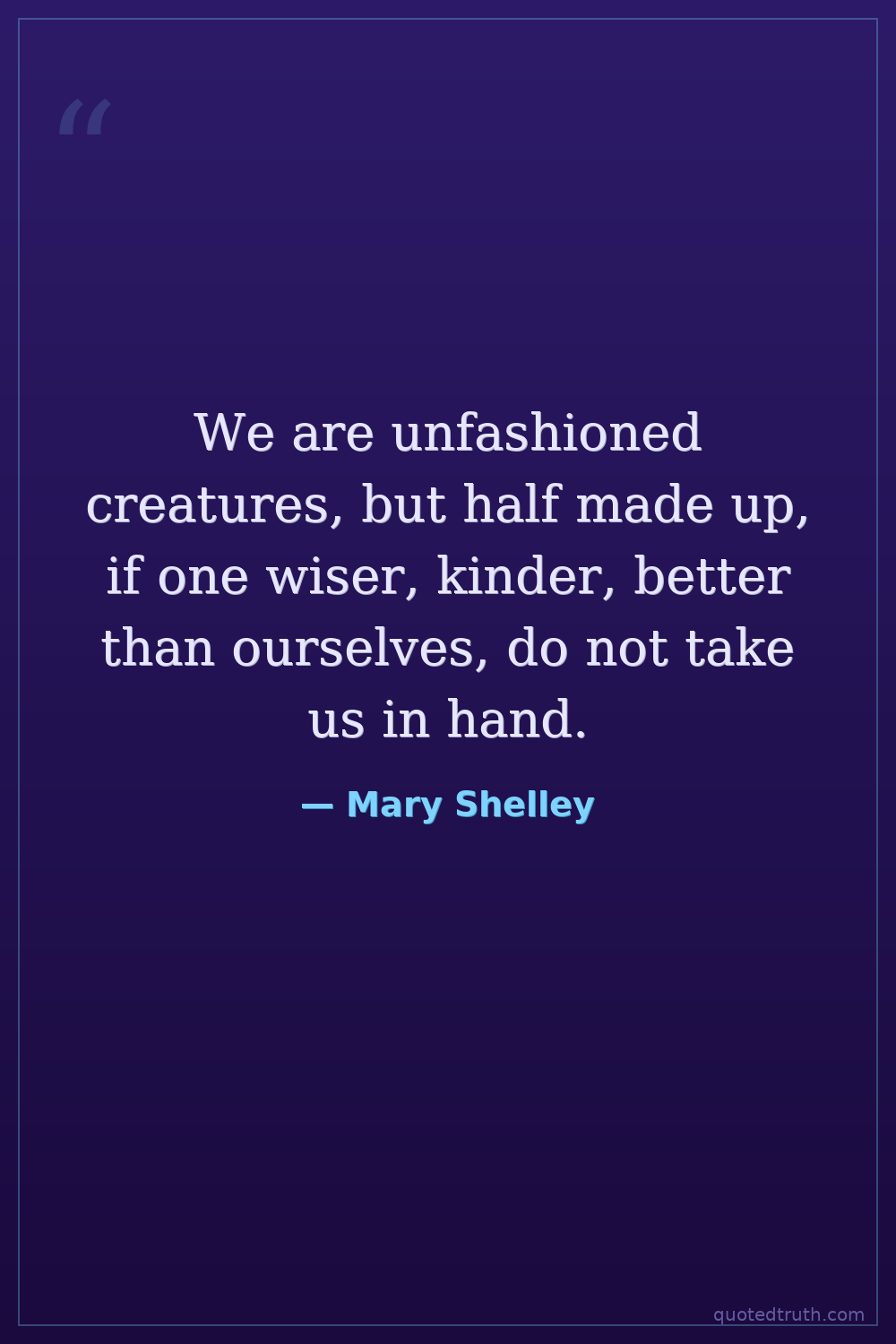 We are unfashioned creatures, but half made up, if one wiser, kinder, better than ourselves, do not take us in hand.