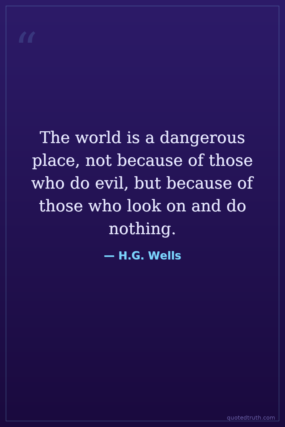 The world is a dangerous place, not because of those who do evil, but because of those who look on and do nothing.